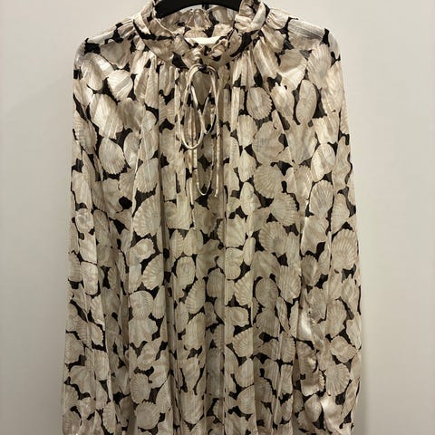 H&M pusero naisille, koko S. Materiaalina polyesteri. Puserossa on kirjava, kukkakuvioinen kuosi tummalla pohjalla. Pitkät hihat ja väljä, laskeutuva malli. Sopii arki- ja toimistokäyttöön sekä kerrospukeutumiseen esimerkiksi topin tai aluspaidan kanssa.