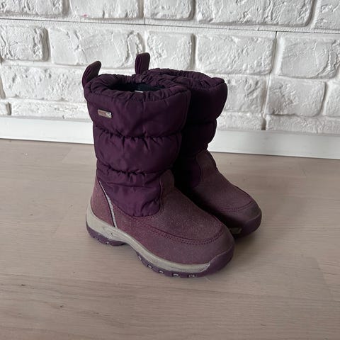 Myytävänä vain muutamasti pidetyt Reiman lasten talvikengät tytöille, koko 24. Sisämitta on 14,5cm. Kengissä on pinkki varsi ja musta alaosa kumimaisesta materiaalista. Sisäpuoli on pehmeä ja lämminvuorinen. Varressa on kiristysnyöri, jolla varren saa tiiviiksi. Pohjassa ei näy minkäänlaista käytön jälkeä ja siinä on karkea kuviointi, joka parantaa pitoa. Kengät soveltuvat kylmään säähän ja ulkoleikkeihin. Kenkien ovh 69.95e