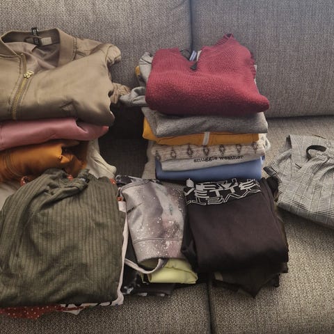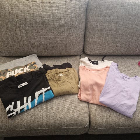 Hyväkuntoinen vaatepaketti koossa xs-s, josaa vaatteita koossa xs-s, guess lompakko, karvasaappaat koko 37 ja gymshark leggingsit.