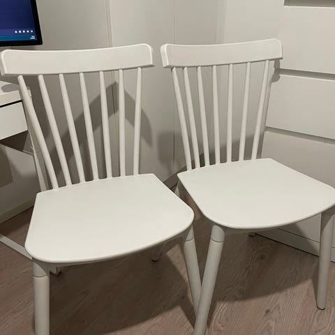 Tuolit hyvässä kunnossa. Kuvat kahden tuolin selkänojien kulmista näyttävät isoimmat vauriot. Yleisilmeeltään erittäin siistit! Istumakorkeus 45cm.