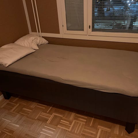 Myydään hyväkuntoinen 90 cm sänky. Erittäin tukeva runko, ei nitise eikä notku – selvästi laadukkaampi kuin perusmarketin sängyt. Patja siisti ja hyvässä kunnossa, ei painumia eikä hajuja.