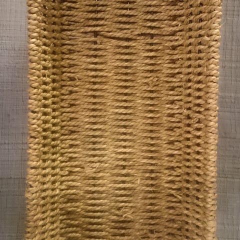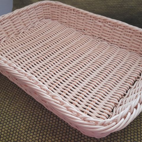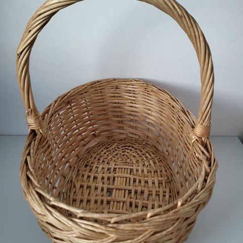 Puuvillapunoksesta valmistettu kaksivärinen kori. Korkeus 26 cm, ovaalin mallinen pohja. Ehjä ja siisti. Monenlaiseen käyttöön sopiva.