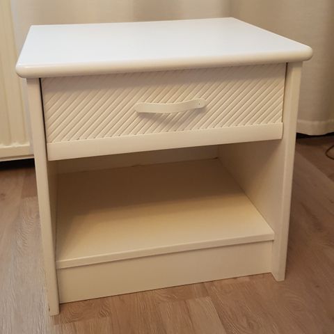 Pieni söpö yöpöytä kauniilla kukka tarratapetilla ja uusilla vetimillä.