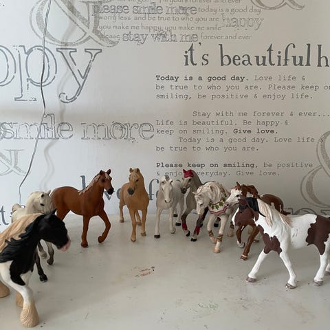 Koko heppa setti kerrallaan. 15 aikuista ja 6 varsaa. Eläintalous.