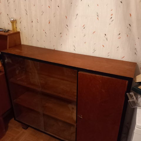 Vanha lasivitriini, kaunis mutta kolhiintunut.