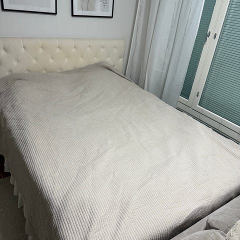 Ruudullinen päiväpeitto väreiltään vaaleanvihreä/luonnon valkoinen/beige
