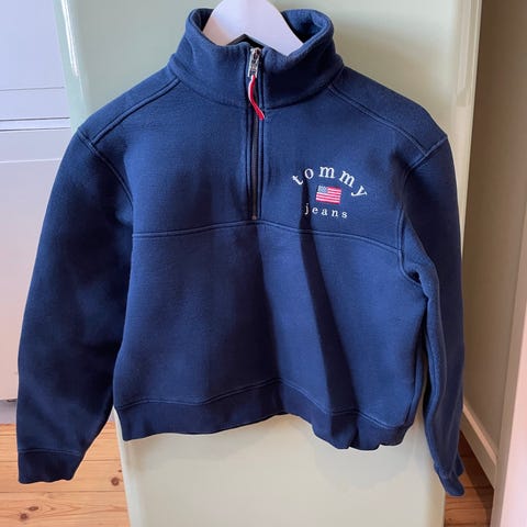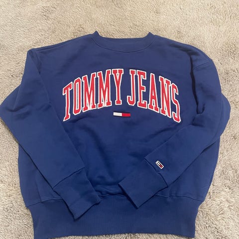 TOMMY HILFIGER tummansininen collegepaita kokoa S mutta mielestäni menee hyvin myös M kokoiselle.
