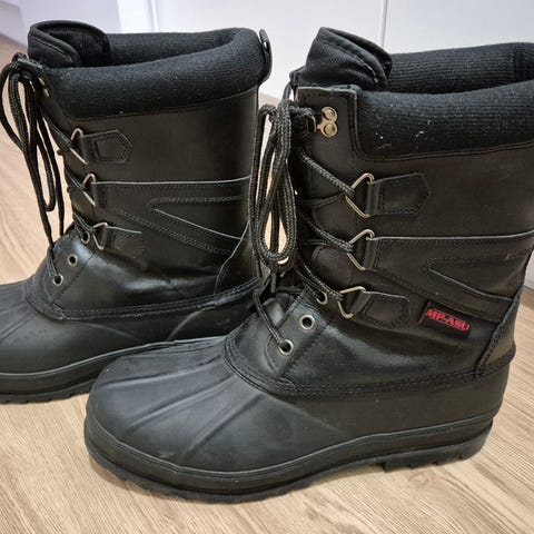 Saappaissa on tarrakiinnitys ja soljet, jotka tukevat jalkaa ja nilkkaa. Päällinen on valmistettu synteettisestä materiaalista ja pitää vettä.