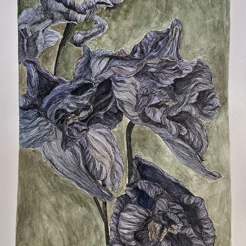 herkkä ja värikäs abstrakti tulppaani maalaus.