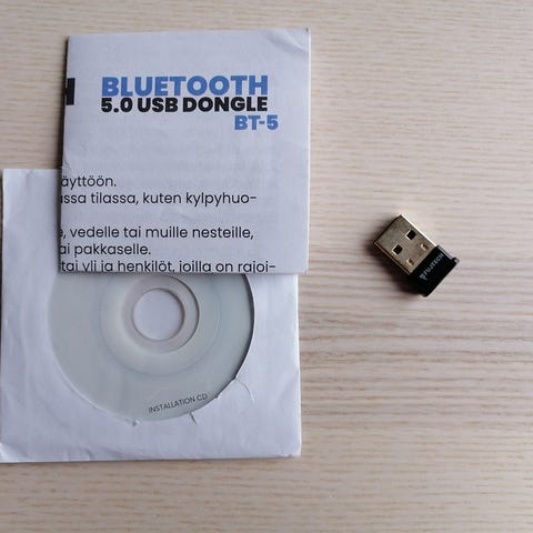 Uusi bluetooth usb sovitin. Toimii suoraan Windows 8, 10 ja 11 järjestelmissä.