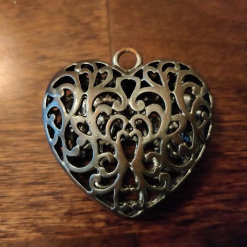 Uusi avattava sydämenmuotoinen riipus. Antrasiitin värinen. 24 x 29 mm.