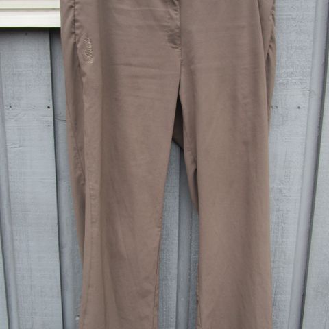 Naisten housut, koko XL. Väri musta. Perusmalliset ulkoiluhousut vapaa-ajan käyttöön. Taskut sivussa ja takana, lisäksi vetoketjutasku sivulla. Vetoketjut lahkeen suissa. Materiaali paksuhkoa elastaanista ulkoilukangasta. Vyötärö 100 cm, haara-lahje 85 cm, sopii siis pitkälle henkilölle.