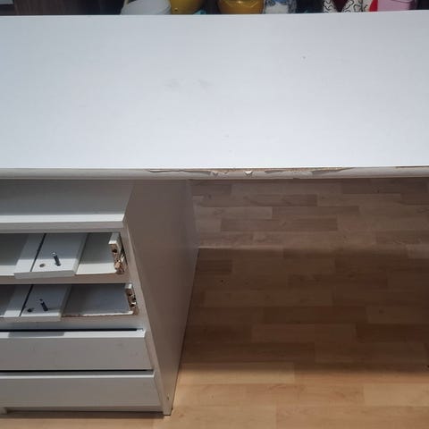 Annetaan pöytätaso vaikka auto tallikäyttöön. En osaa sanoa mitä materiaalia, mutta päälystetty dc-fix. Koko n. 80cm x 200cm