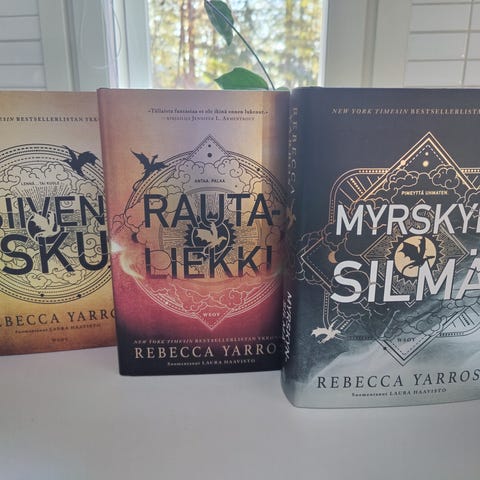 Rebecca Yarrosin Siivenisku-kirja. Kovakantinen, suomenkielinen. Kirjan selässä kansipaperissa pieni naarmu/taitos (näkyy kuvassa), muuten moitteettomassa kunnossa.