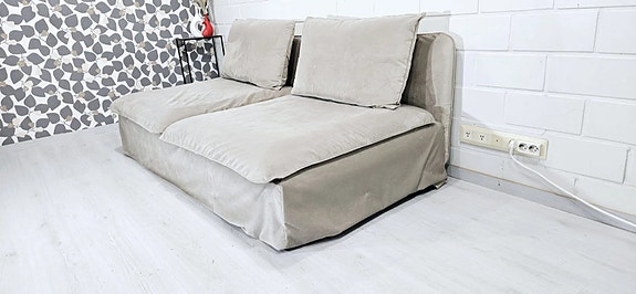 Sohva on hyvässä kunnossa. Päälliset juuri pesty. Päälliset ovat irrotettavat runko myöden. Mitat Leveys 189 cm, syvyys 98 cm. Väri Lejde harmaa
