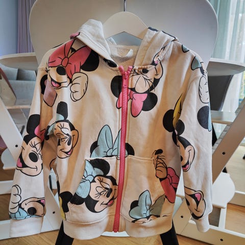 Myydään H&M:n Minni huppari koossa 98/104. Hupussa Minnin korvat ja rusetti. Ostettu uutena, yhden tytön käytössä ollut.
