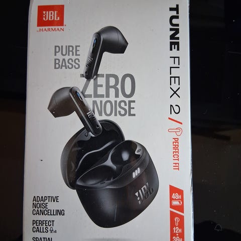 JBL Tune Flex 2 nappikuulokkeet musta. Langattomat in-ear -kuulokkeet latauskotelolla. Bluetooth-yhteys, Pure Bass -ääni ja aktiivinen melunvaimennus (ANC) mukautuvilla kuuntelutiloilla. Kuulokkeet tukevat tilaääntä (Spatial Sound) ja niitä voi hallita JBL-sovelluksen kautta Android- ja iOS-laitteilla. Sopivat musiikin kuunteluun, puheluihin ja yleiseen arjen käyttöön.