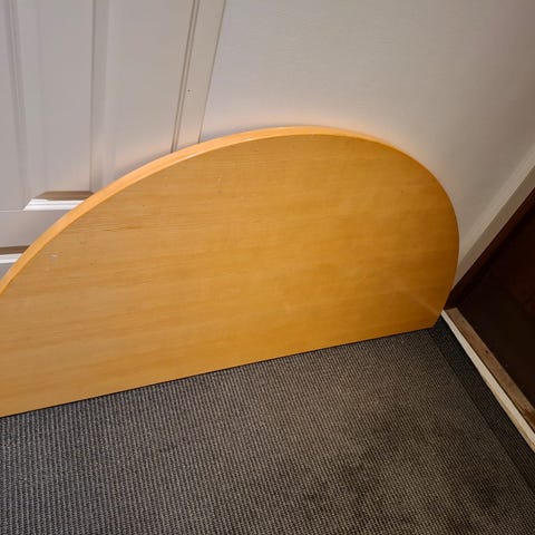 Artekin pöytä puolipyöreä. Pöytiä on kaksi eli yhdessä niistä tulisi 150 cm halkaisijaltaan. Hinta koskee yhtä puolikasta pöytää.