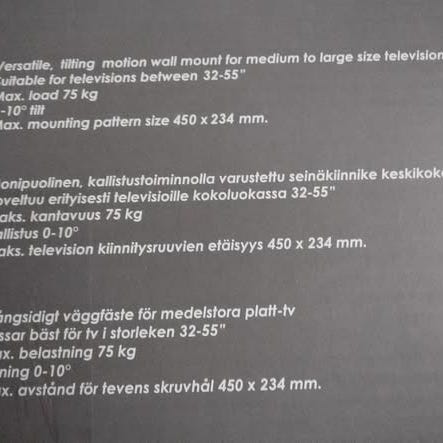 One for all television seinäteline, ruuvit tulevat mukaan