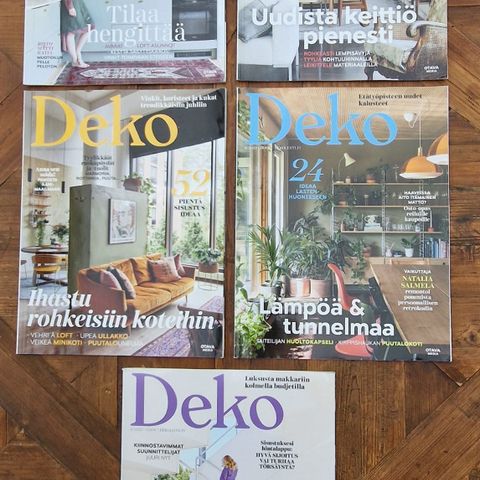 Sisustuslehtipaketti 20 kpl, hyväkuntoisia. Deko kaksi lehteä v. 2007, 4 lehteä v. 2016, 2 lehteä v. 2019, 11 lehteä v. 2021 ja yksi v. 2022. Osa lehdistä kirjaston poistoja.