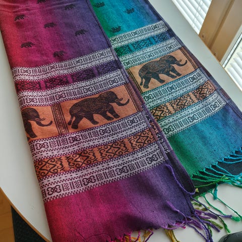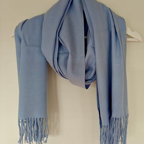 Sininen kashmir hiuvi. 2x käytetty. Noin 160 cm pitkää