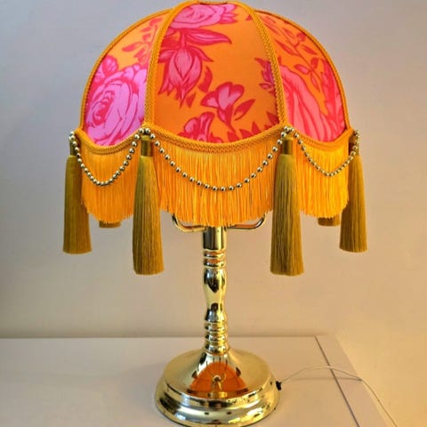 Avainsanoja: vintage valaisin lamppu pöytälamppu seepra eläinkuosi verhoilu artesaani varjostin