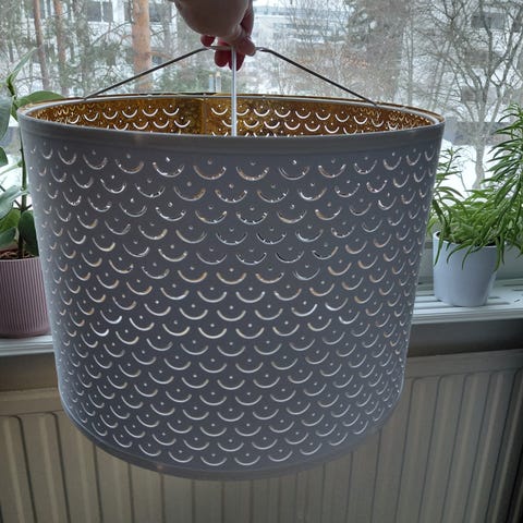 Huom, toinen samanlainen myynnissä myös. Tähän valaisimeen ei kuulu sitä kattoon tulevaa kupua. Kuvassa näkee.