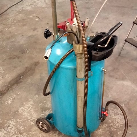 Samoa merkkinen paineilmalla toimiva 25ltr öljyntäyttösäiliö.