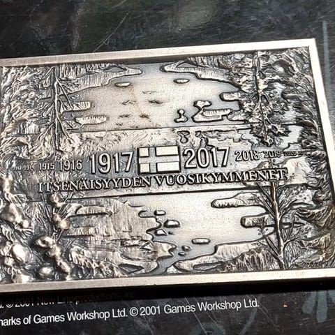 Hakusanat: markka laihia, metallilaatta, suomen skotlanti, koriste, Paketoitava, humoristinen