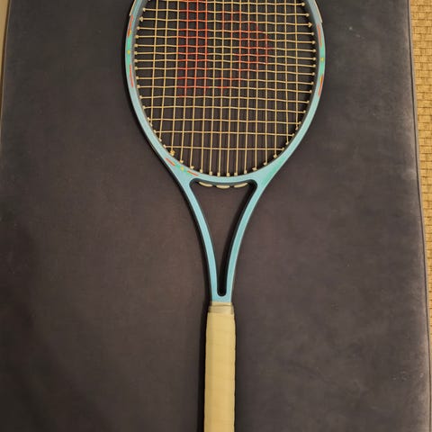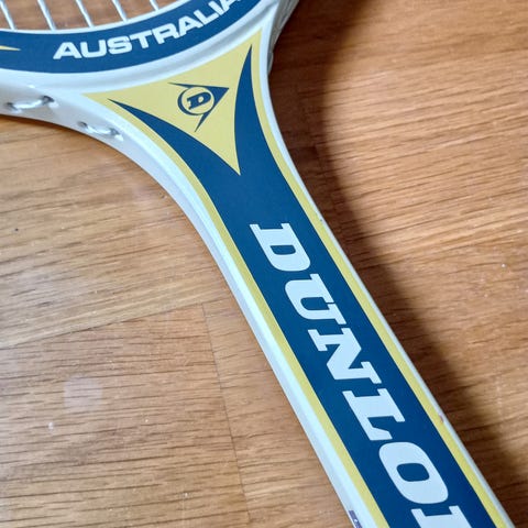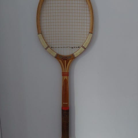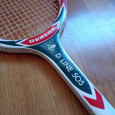 Tyylikäs puinen Dunlop D Line 303 tennismaila kesän retropeleihin tai koristeeksi seinälle.