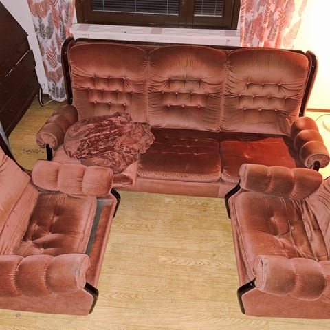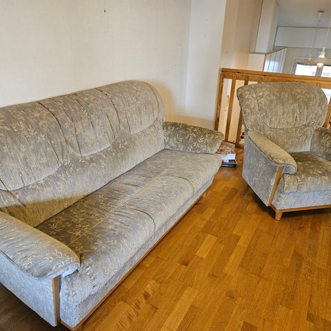 Erittäin hyväkuntoinen ja siisti sohva ja kaksi nojatuolia. Myydään tilanpuutteen vuoksi. Nojatuolin leveys 95 cm, sohvan leveys 198 cm