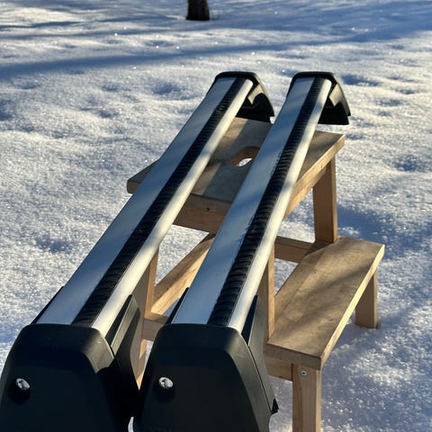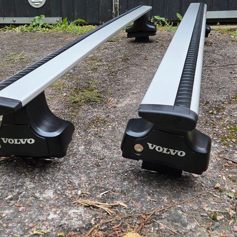 Myydään alkuperäiset Volvo taakkatelineet (siipiprofiili / wing profile) kattokiskoihin. Sopii Volvo V90 (2017–) ja muihin yhteensopiviin malleihin kattokiskoilla.