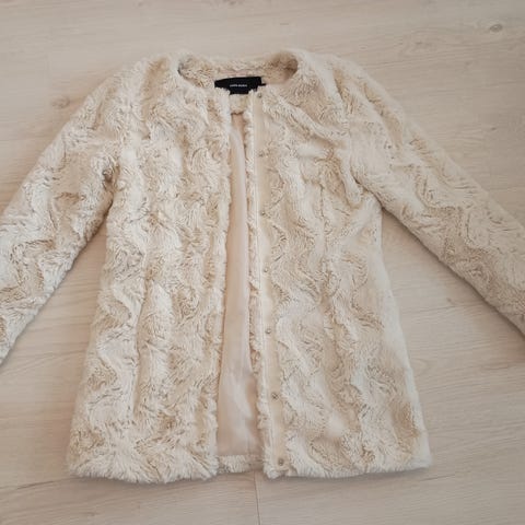 Valkoinen lyhyt karvatakki koko S