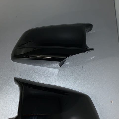 BMW peilinkotelot, väri musta. Kaksi kappaletta, ulkopeilit. Materiaali muovia. Kotelot ovat käytetyt ja pinnassa on näkyviä naarmuja ja kulumaa, kuten kuvassa näkyy. BMW 5 f10
