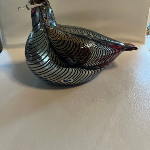 Myydään upea Oiva Toikan suunnittelema lasifasaani, valmistettu Nuutajärvellä. Kyseessä on käsintehty ja signeerattu yksilö, jossa kauniit sinisen, vihreän ja kirkkaan lasin sävyt sekä Toikalle tunnusomainen sulkakuviointi.