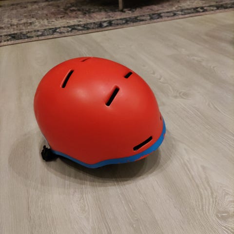Salomon JR laskettelukypärä koossa M (55–58 cm). Violetti kuori, jossa turkooseja ja monivärisiä yksityiskohtia korvien kohdalla. Kypärässä on useita ilmanvaihtoaukkoja ja takana pidike laskettelulaseille. Soveltuu juniorikäyttäjälle lasketteluun ja lumilautailuun.