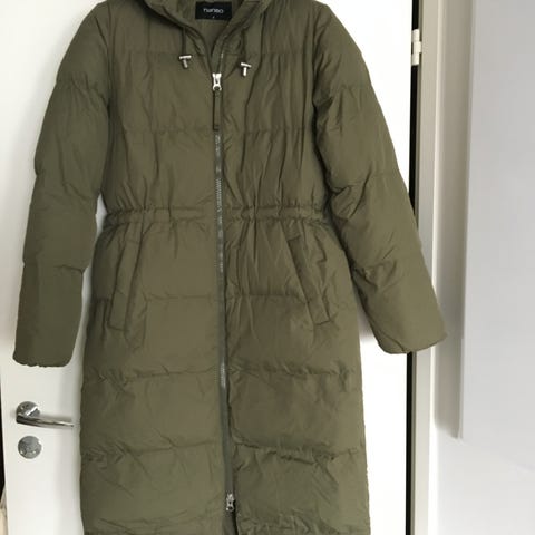 Nanso Viima naisten toppatakki koossa S. Pitkä, tikattu malli, jossa painonappikiinnitys edessä. Takissa on huppu ja pitkät hihat. Väri on oranssi. Materiaali on pääosin polyesteriä (päällinen, vuori ja toppaus). Sopii viileään säähän ulkotakiksi.