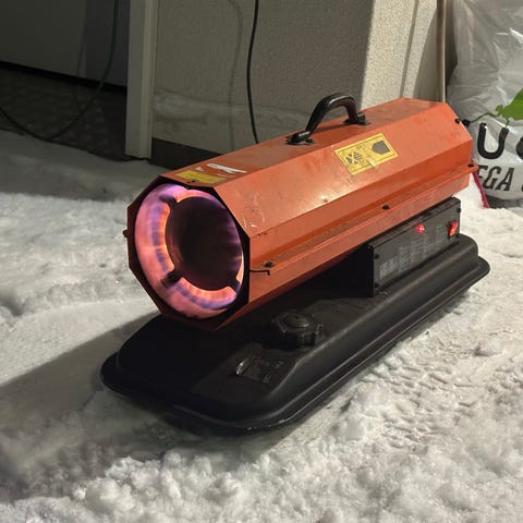 Diesel käyttöinen hallilämmitin 30kW 230V. Käytetty juhlateltan lämmitykseen. Käyttötunnit arviolta alle 150h. 10min testikäytön aika toimi ongelmitta.