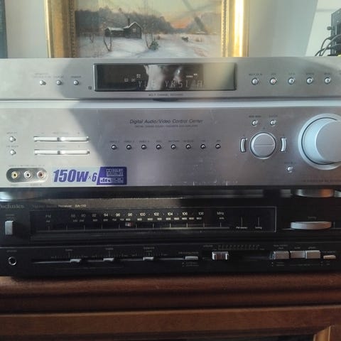 Sony STR-DE675 5.1-kanavainen AV-receiver / viritinvahvistin (n. 2001–2003 malli) Dolby Digital, DTS, Pro Logic II, surround-moodit (Theater, Hall jne.), FM/AM-radio (RDS), phono-tulo vinyylille. Teho ~100 W/kanava. Hyvä perus-surround-vahvistin vanhaan 5.1-setuppiin. Kaukosäädin mukana!