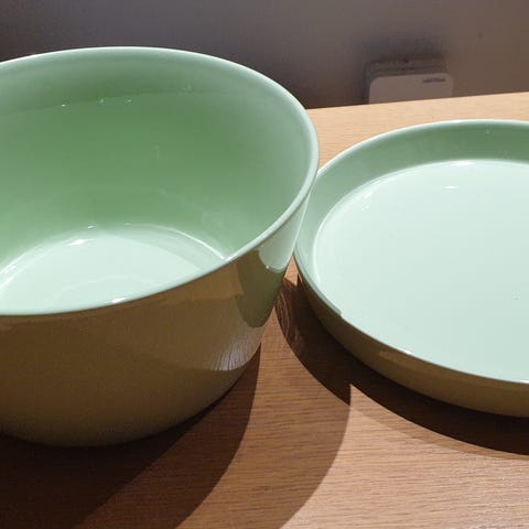 Hyväkuntoinen Iittala Tilda uunivuoka/tarjoiluastia/kansi, vaaleanvihreä. Halkaisija 25 cm, korkeus 3 cm. Kestää astianpesukoneen, mikroaaltouunin, uunin ja pakastimen. Pia Törnellin suunnittelema Tilda oli tuotannossa 1998-2005.