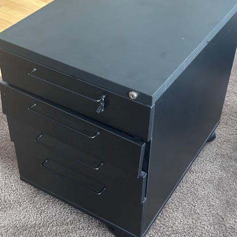 Laatikosto pyörillä, harmaa. Laatikostossa on useita vetolaatikoita, joissa metalliset vetimet. Ylimmässä laatikossa on lukko. Sopii esimerkiksi toimistoon, työpisteelle tai säilytyskalusteeksi kotiin. Pyörien ansiosta laatikostoa on helppo siirtää.
