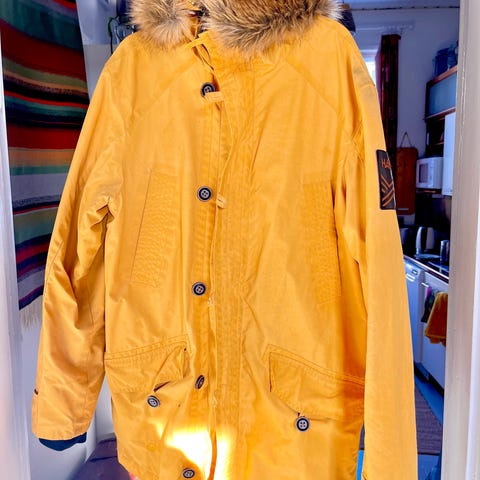 Todella lämmin haltin parkatakki. Reilu untuvatäyte. On itselle jopa liian lämmin, joten jäänyt kaappiin ja vain pari kertaa käytetty.
