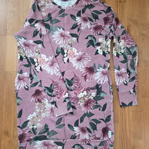 Versonpuoti arkimekko, naisten mekko kokoa XS. Materiaalina puuvilla. Mekossa on monivärinen, kukkakuvioinen kuosi tummalla pohjalla. Malli on suoralinjainen ja pituudeltaan polven tuntumaan tai hieman sen alapuolelle ulottuva. Hihat ovat noin 3/4-pituiset. Sopii arkipukeutumiseen ja kerrostettavaksi esimerkiksi neuletakin tai leggingsien kanssa. Muutamia kertoja käytetty, mutta sittemmin pieneksi jäänyt. Hyvässä kunnossa. Molemmilla sivuilla taskut. 95% puuvilla ja 5% elastaani. Koiratalous. Myynnissä myös muualla.