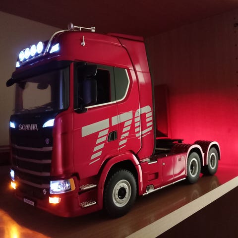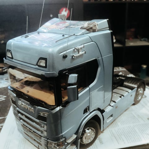 Uusi, isokokoinen, painava ja erittäin yksityiskohtainen Scanian pienoismalli, mittakaava 1:18. Peilit ja kilkkeet vielä laatikossa. Valmistaja Premium ClassiXXS.