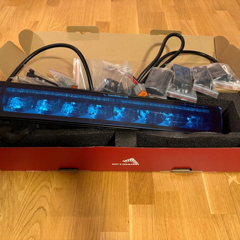 Uusi lisävalo avaamattomassa paketissaan