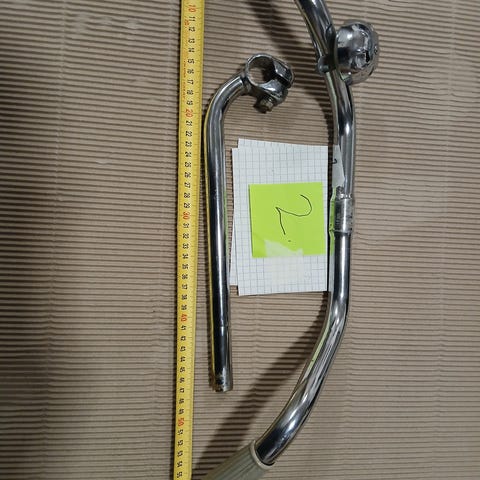Polkupyörän ohjaustanko, materiaali metallia kromipinnalla. Putken halkaisija noin 22,2 mm. Tanko on muotoiltu usealla taivutuksella, ja siinä on kiinnityskohdassa vahvikekolmiot. Sopii polkupyörään, jossa on 22,2 mm ohjainputki. Kädensijat eivät välttämättä sisälly mukaan, tarkista myyjältä sisältö.