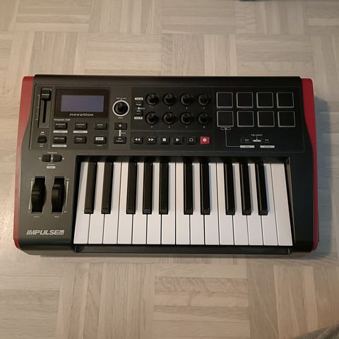 Novation Launchkey 25 MIDI‑kosketinsoitin. Laitteessa on 25 koskettimen koskettimisto sekä useita ohjauspainikkeita, potikoita ja rumpupadeja ohjelmistosoittimien ja DAW‑ohjelmien ohjaukseen. Väri on musta, ja pohjalevy turkoosi. Soveltuu musiikin tuotantoon ja MIDI‑ohjaukseen tietokoneen tai muun yhteensopivan laitteen kanssa.
