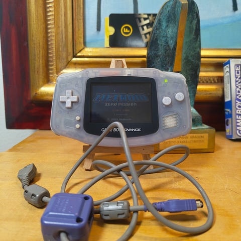 Myyntiin oikein hienossa kunnossa oleva alkuperäinen Gameboy Advance (AGB-001) violetin värisenä. Juuri puhdistettu ja vaihdettu uudet paristot. Toimii erittäin hyvin, käynnistysnäppäin ei jumittele, äänet pelaa hyvin, näyttö käynnistyy normaalisti ja peli latautuu nopeasti. Alkuperäinen paristonkotelo/patterinkansi. Katso kuvat.