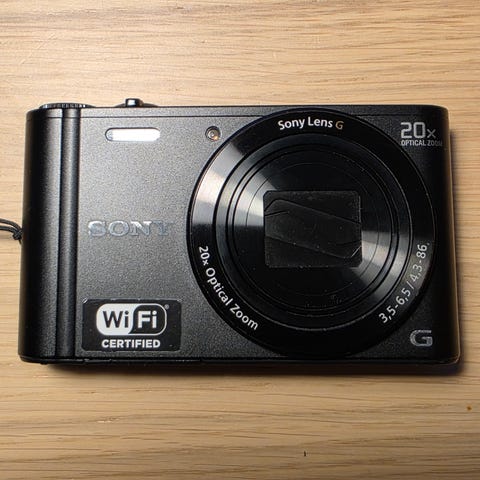 Saisi olla suht. pienikokoinen esim. Sony CyberShot dsc hx...