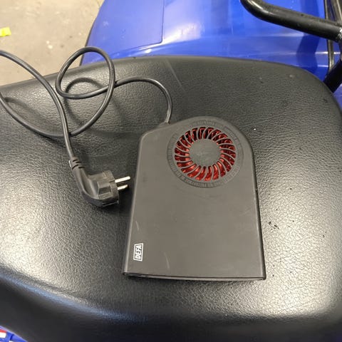 Defa auton sisätilanlämmitin. Sähkötoiminen lämmitin, jossa on verkkovirtajohto ja puhallinilman ulostulo edessä. Tarkoitettu auton sisätilojen lämmittämiseen ja huurteen poistamiseen ikkunoista. Soveltuu käytettäväksi ajoneuvon sisätilassa valmistajan ohjeiden mukaisesti.